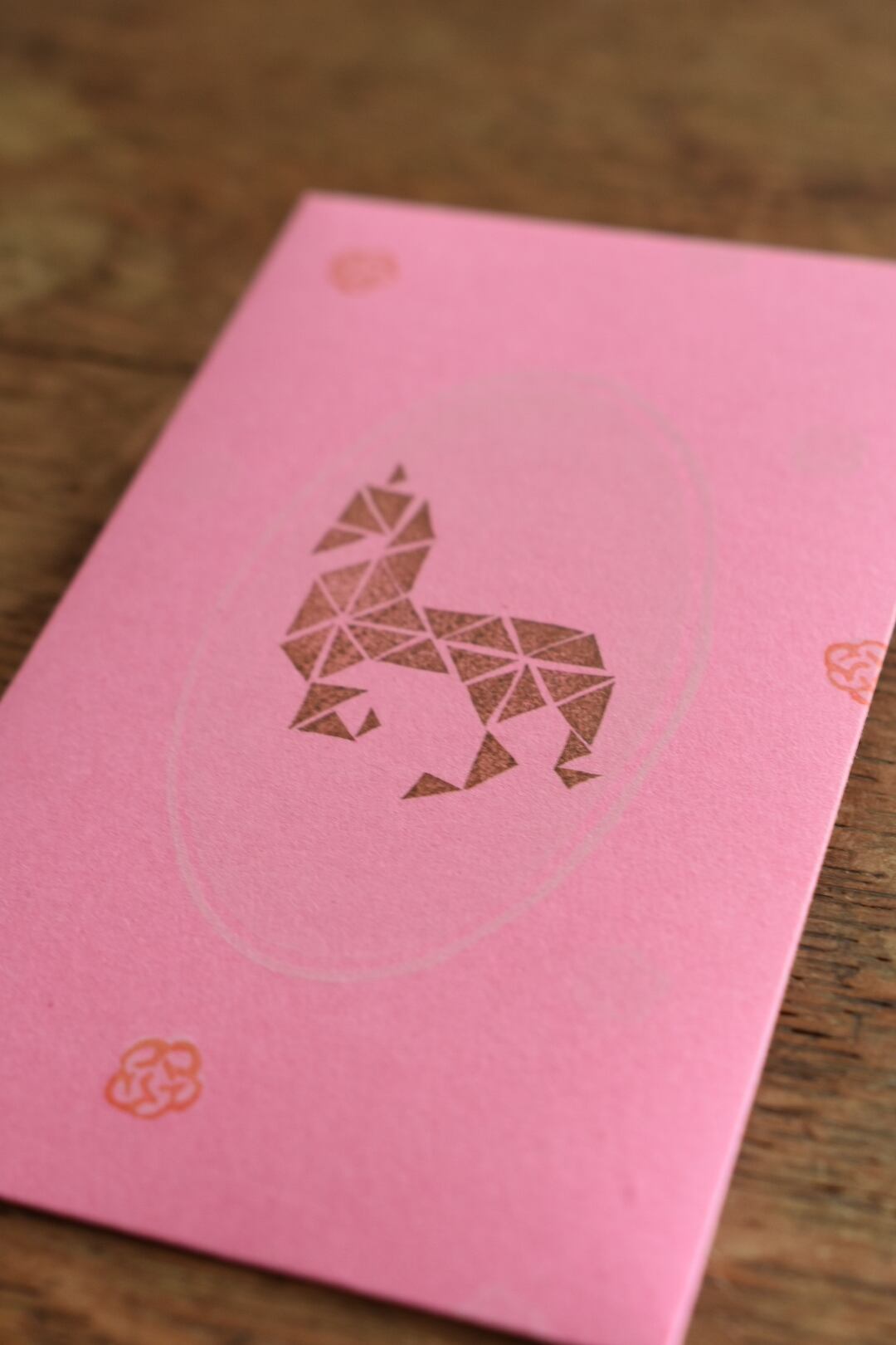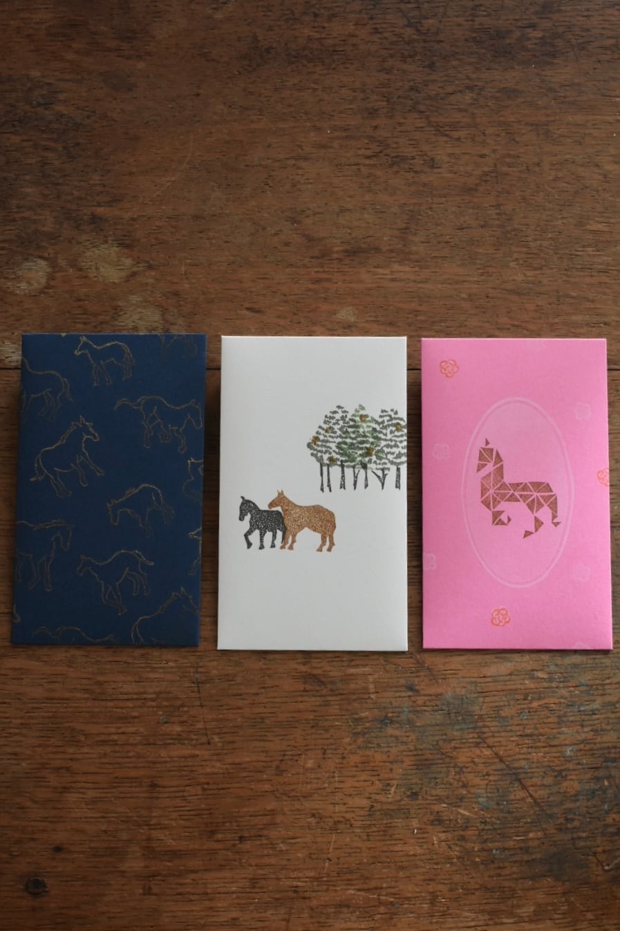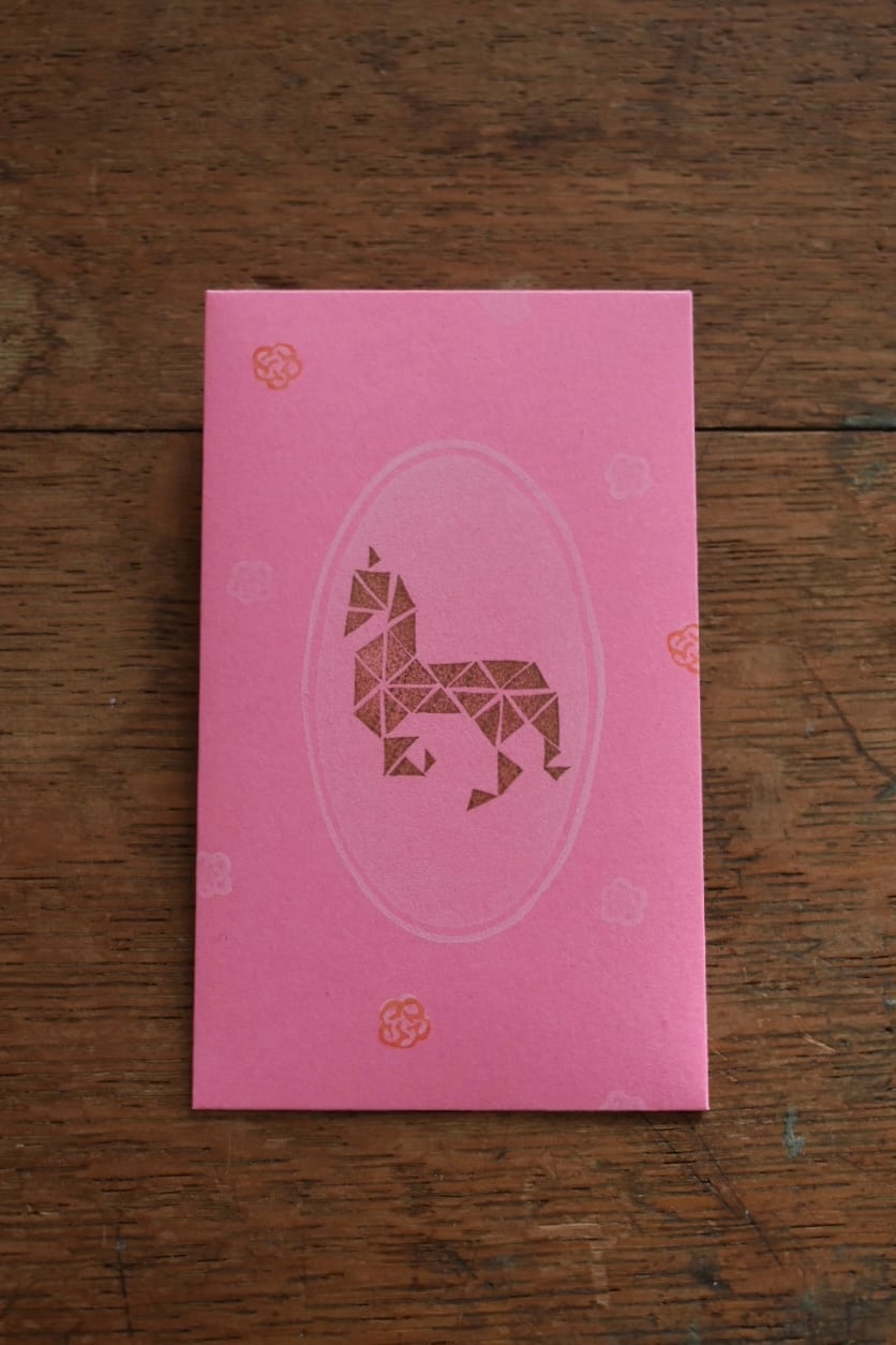 消しゴムはんこのポチ袋です。ミニカードを入れてちょびっとした封筒としてもお使いいただけます。